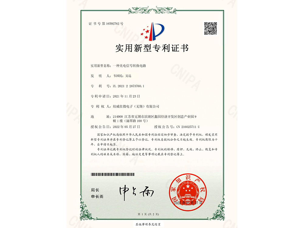 一种光电信号转换电路实用新型专利证书