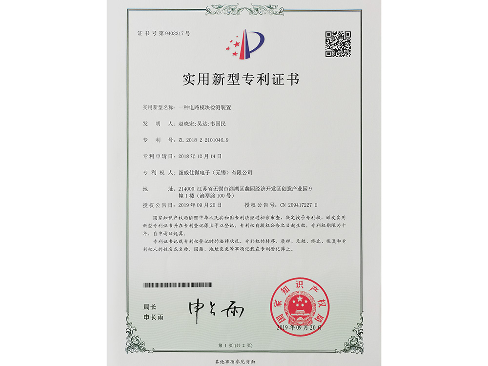 一种电路模块检测装置实用新型专利证书