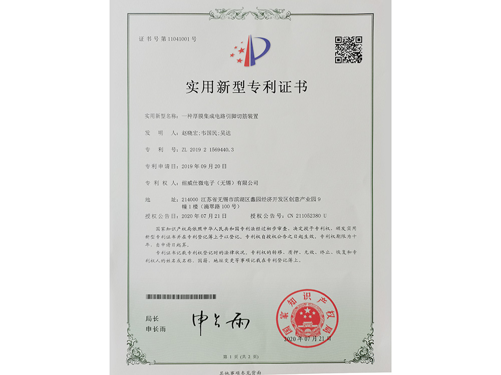一种厚膜集成电路引脚切筋装置实用新型专利证书