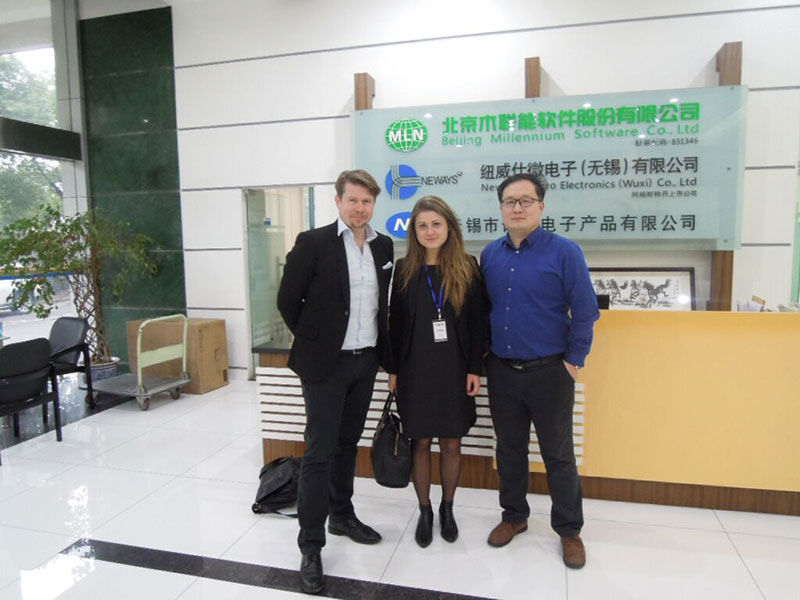 1月17日,瑞典客户Mr. Lars Darvall 及Miss Ebba ldsater等4人来无锡纽威仕微电子就加工业务进行考察。参与会客的有执行董事赵晓宏及纽威仕各相关职能部门人员。访问期间,客户参观了公司的办公管理、工场及库管等区域,对公司的管理及运营状况给予了充分的肯定,同时,就双方的合作进行了有效、友好的洽谈。