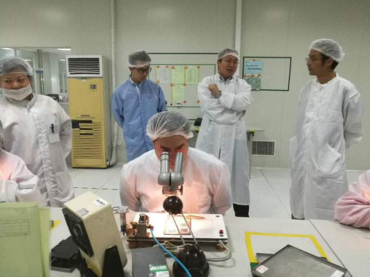 执行董事赵晓宏对苏州慧闻纳米科技有限公司首席执行官吴庆乐博士一行6月2日的来访表示欢迎。双方对气敏传感器在业务上进行了广泛深入的交流和探讨,并希望能在未来的封装产业化上有深入的合作,实行双赢。在参观过程中,我司陪同人员给客户进行了详细的工艺及产品介绍,并对客户提出的问题进行解释。