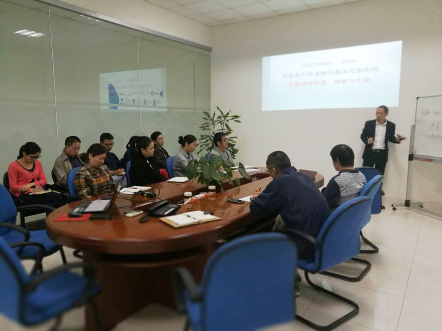 2017年10月12日-13日,由公司聘请了上海管见企业管理咨询有限公司的邓六中老师进行IAFT16949新版标准的培训,共有15人参加,在分析讲解过程中,员工们认真的记着笔记。